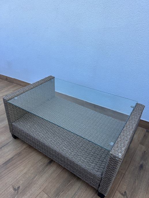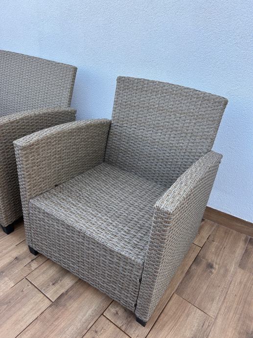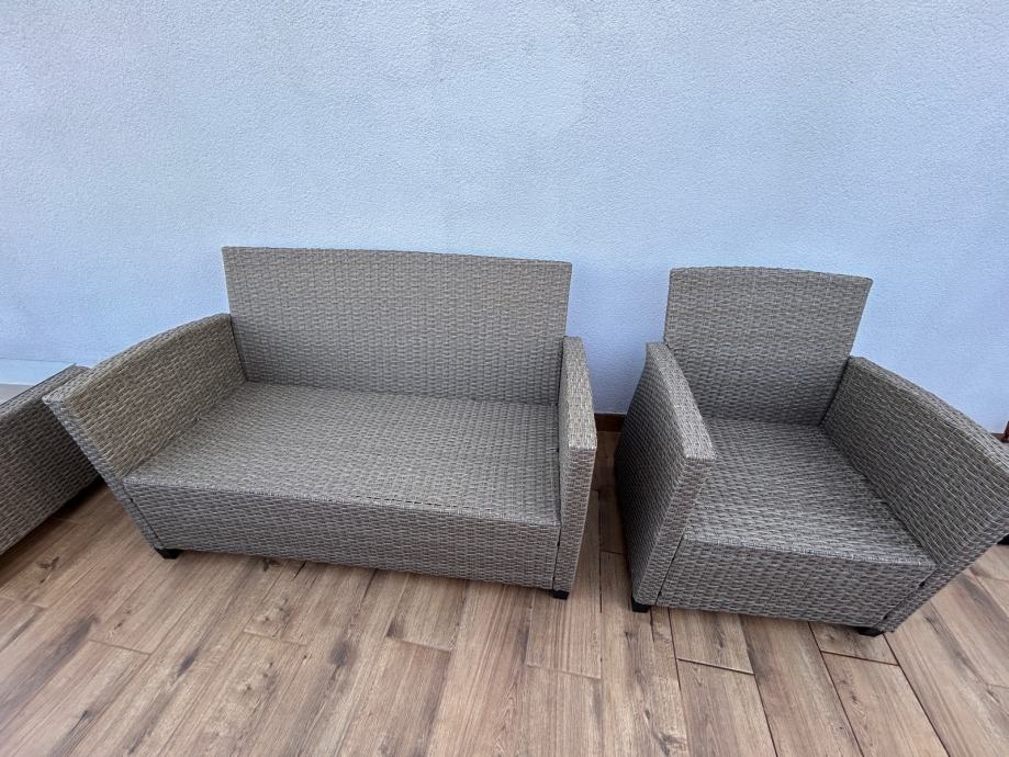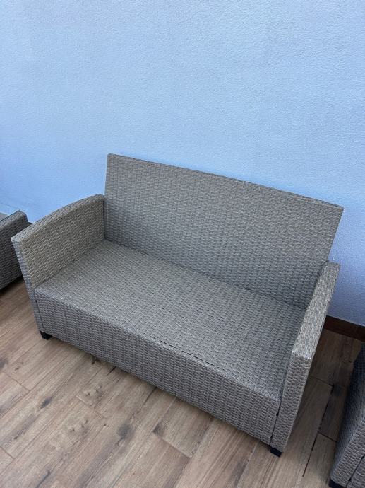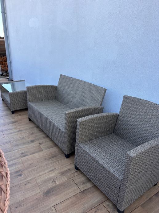 Garnitura se sastoji od dvosjeda, fotelje i stolića, jastuci dolaze u kompletu.