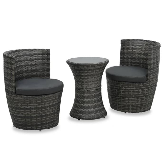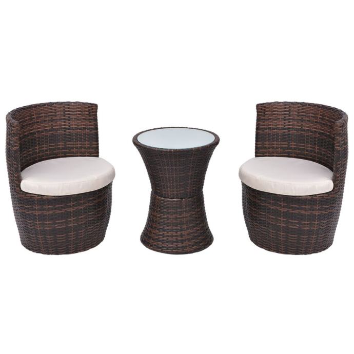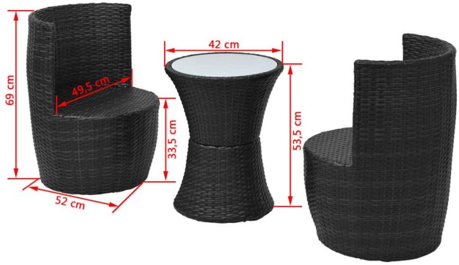 Ovaj stilski i funkcionalni stol od ratana i stolice savršen su odabir za opuštanje ili uživanje na suncu sa obitelji u vrtu, dvorištu, na balkonu ili terasi. Stolice su izrađene od čvrstog čelika i visokokvalitetnog PE-ratana koji je vrlo izdržljiv.Debeli, uklonjivi jastucu su vrlo udobni. Budući da je namještaj od ratana lagan, svaki komad je lako pomicati. Stol ima uklonjivu površinu od matiranog stakla . Po potrebi se mogu dodati četiri podesive noge za svaku stavku. Ovaj stol i stolice, mogu se postaviti tako da formiraju kompaktnu jedinicu koja se lako pohranjuje. Isporuka uključuje 1 stol, 2 stolice i 2 jastučića sjedala. Napomena: Savjetujemo Vas da pokrijete namještaj tijekom kiše, snijega ili mraza.