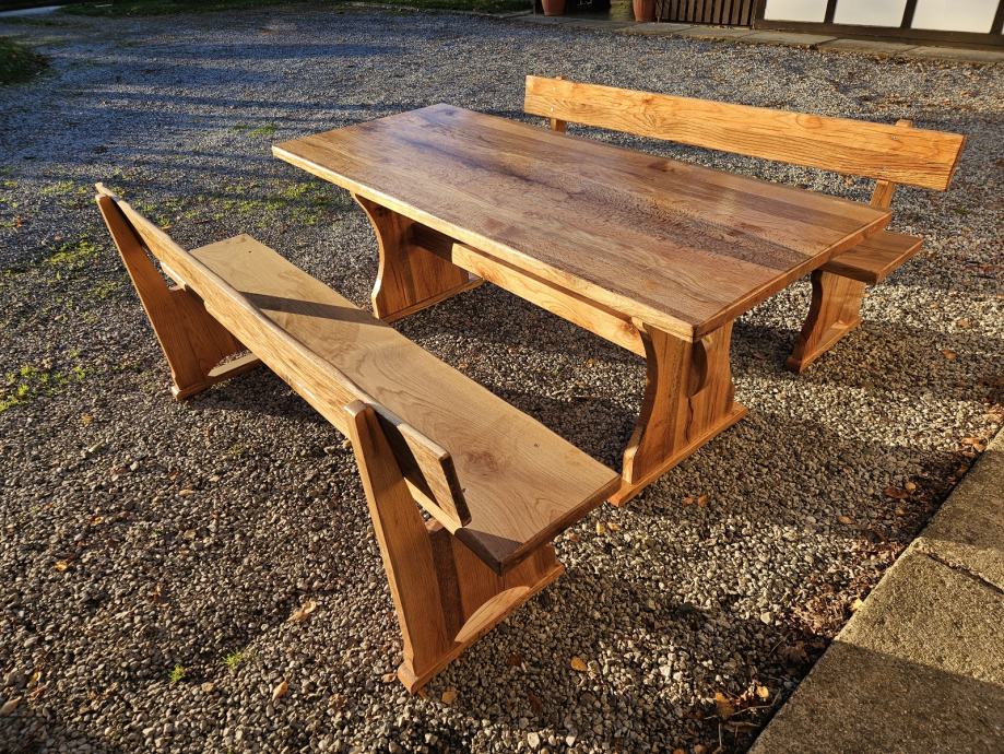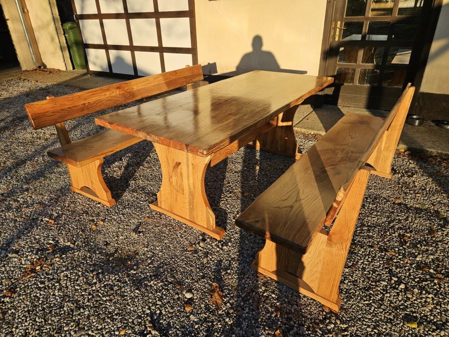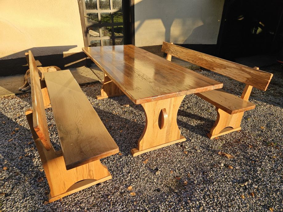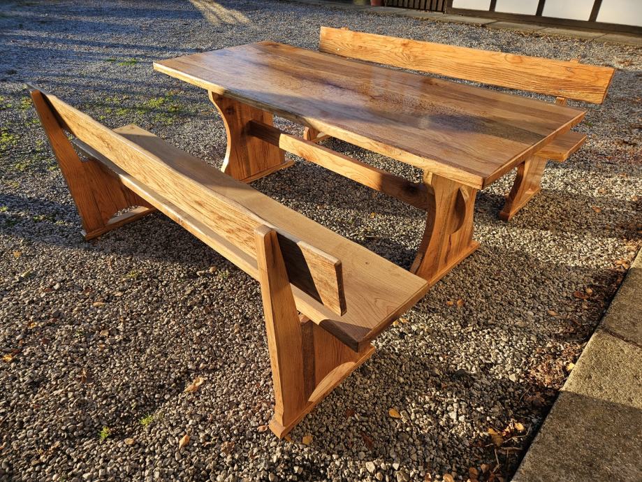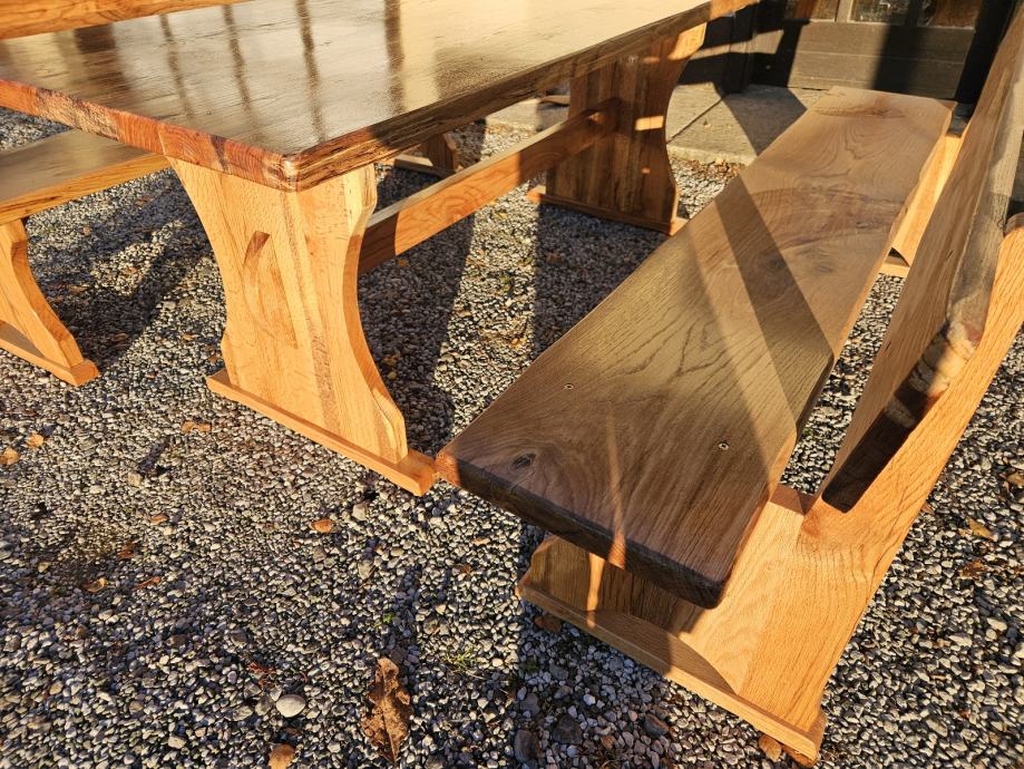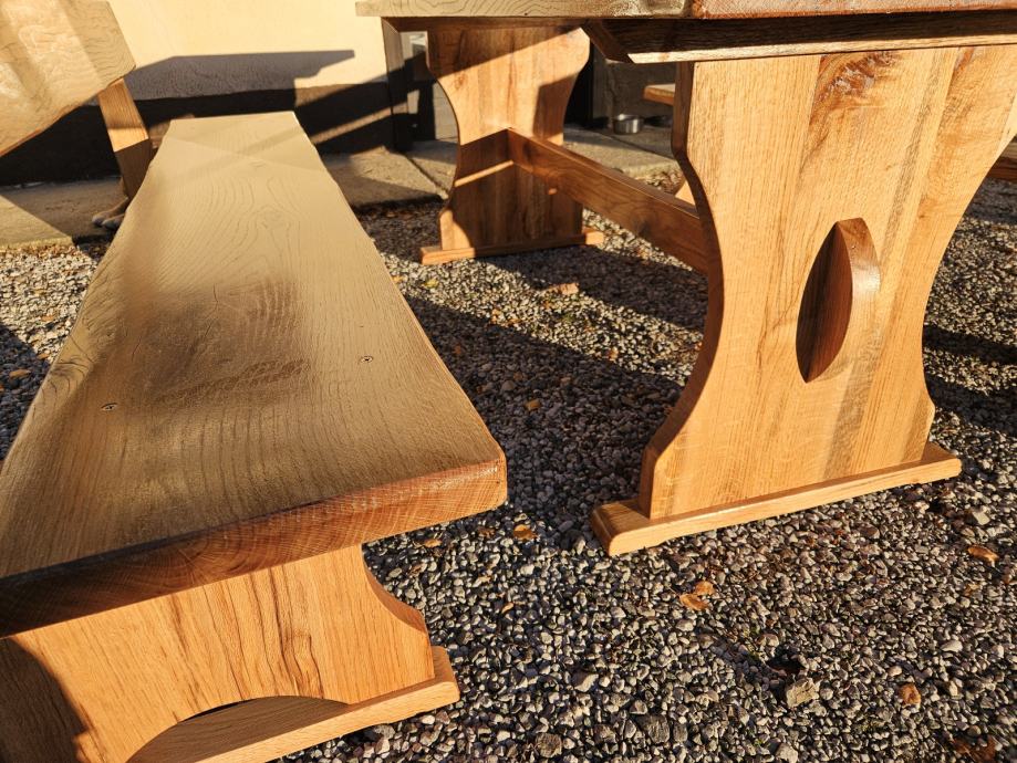 Stol i klupe puno drvo, hrast cer