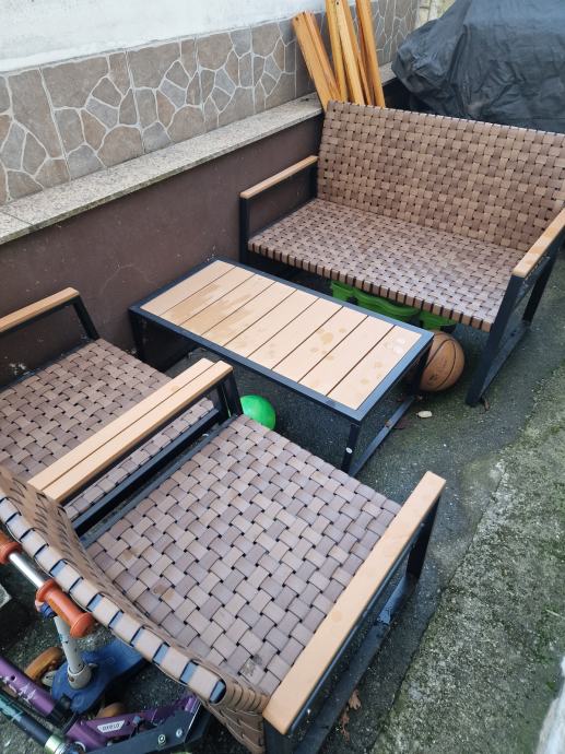 Vrtna garnitura, aluminijski okvir, sa 7 jastuka.Pletena koža.