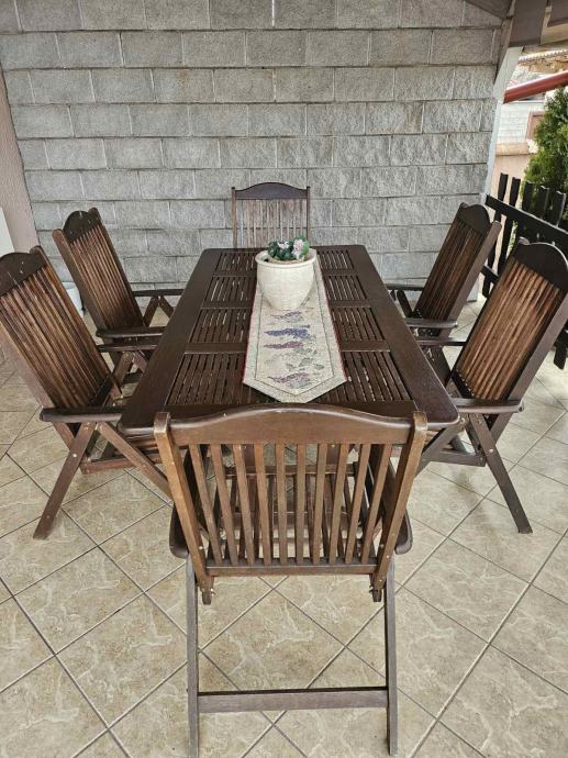 Prodajemo vrtnu garnituru (stol i šest stolica) u dobrom stanju. U cijenu uračunate i sjedalice.