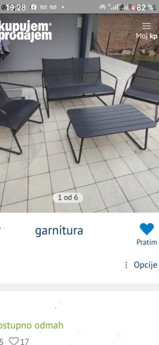 Prodajem vrtnu garnituru metalnu tamno sivu sa čvrstim mrežastim platnom. Korištena samo jednu sezonu,očuvana. Sastoji se od stolića,dvije stolice i dvosjedom. Prodajem jer je višak ,koštala je oko 200€ nova. Moguća dostava.