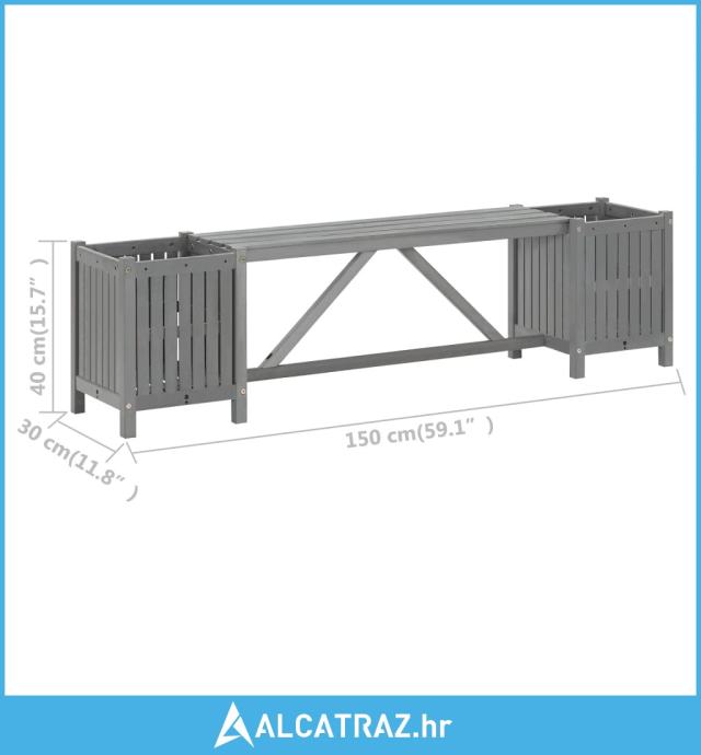 Vrtna klupa s 2 sadilice 150 cm masivno bagremovo drvo siva - NOVO