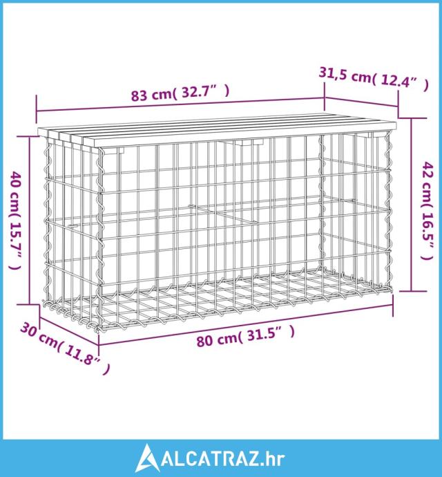 Vrtna klupa gabionskog dizajna 83x31,5x42 cm masivna borovina - NOVO