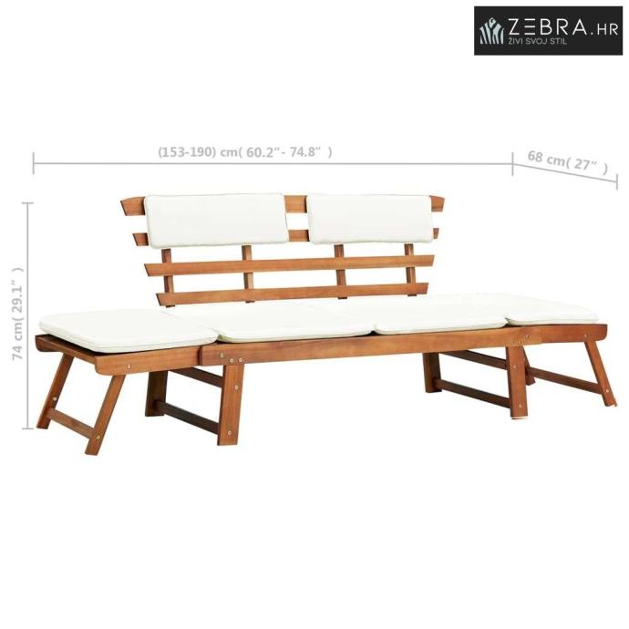 Vrtna klupa s jastucima 2-u-1 190 cm masivno bagremovo drvo - Smeđa i