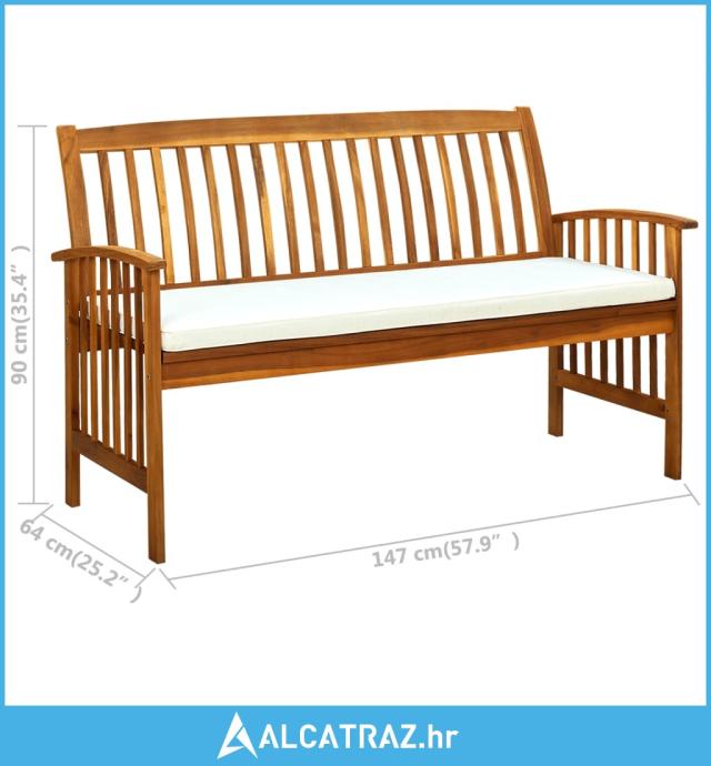Vrtna klupa s jastukom 147 cm od masivnog bagremovog drva - NOVO