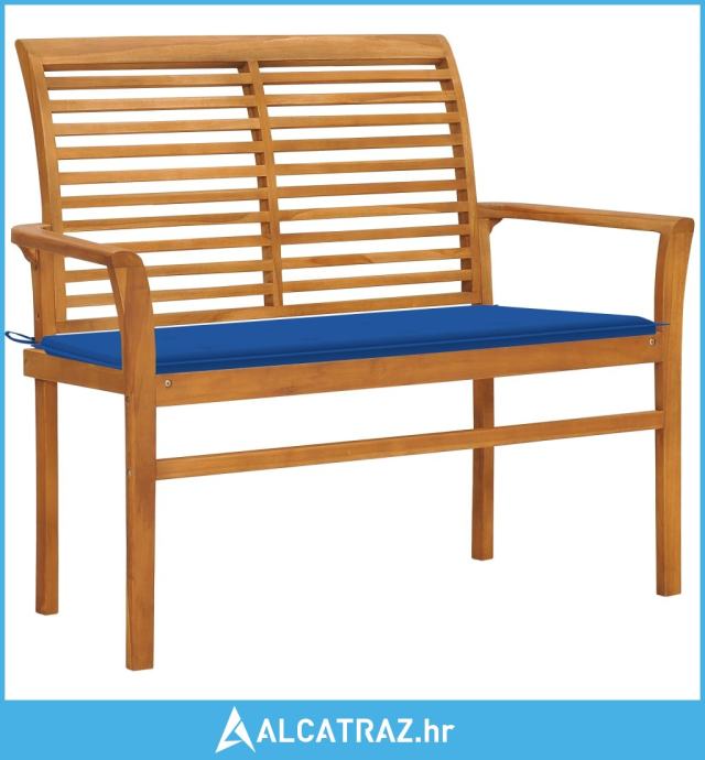 Vrtna klupa s kraljevski plavim jastukom 112 cm od tikovine - NOVO
