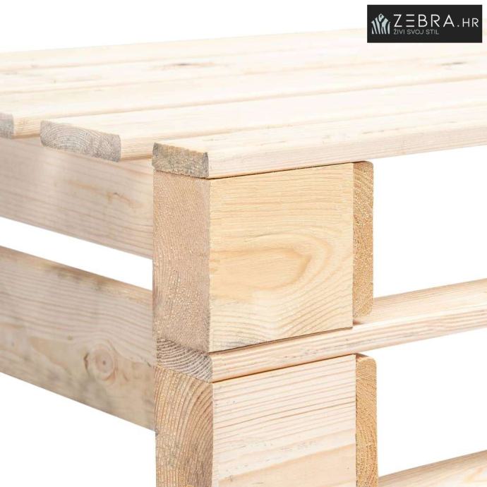 Napravljena od impregnirane borovine, ova vanjska klupa od paleta izdržljiva je i otporna na vremenske utjecaje. Ova klupa za terasu ima čvrstu konstrukciju i zahtijeva malo održavanja. Zajedno s jastucima (nisu uključeni), naša vrtna klupa pružit će vrhunsku udobnost vama i vašim gostima.