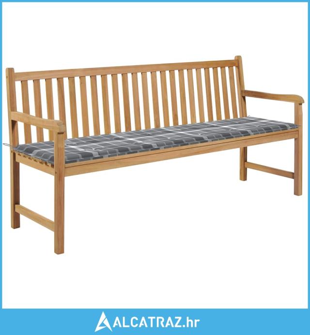 Vrtna klupa sa sivim kariranim jastukom 175 cm masivna tikovina - NOVO