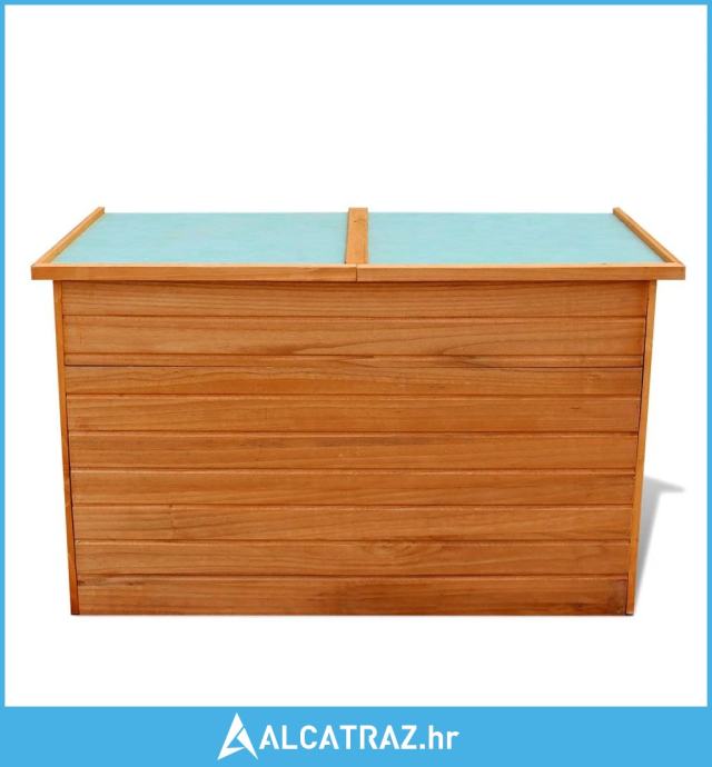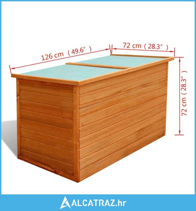 Ova vodootporna drvena kutija za odlaganje je idealno rješenje za vanjsku pohranu Vaših jastučnica, jastuka, deka, igračaka, knjiga i drugih predmeta koji se nalaze okolo Vaše kuće ili vrta.