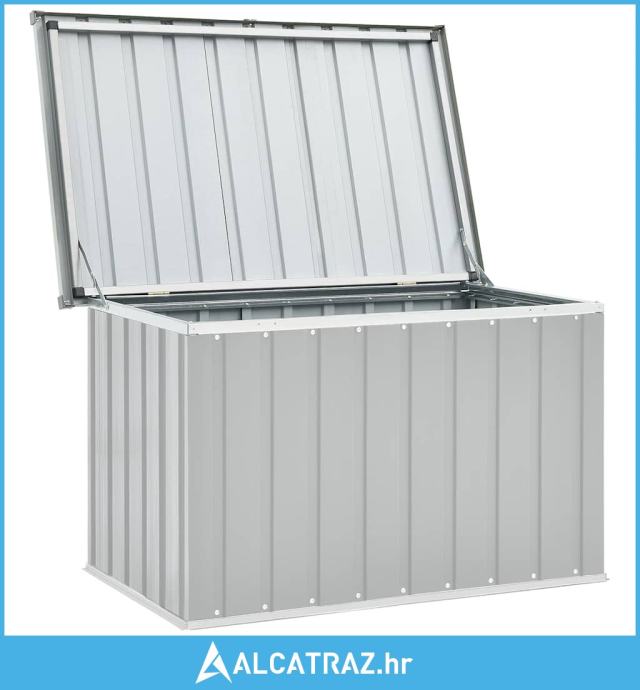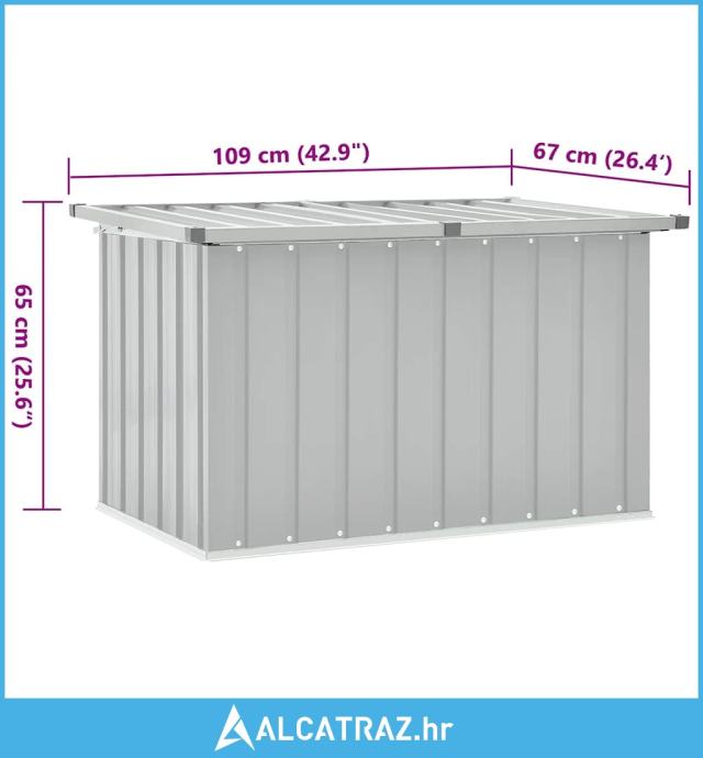 Prostrana vrtna kutija izvrsna je za spremanje jastuka, jastučića, pokrivača, i drugih predmeta. Zahvaljujući svojoj čvrstoj konstrukciji, može se upotrebljavati i kao kutija za alat. Škrinja za pohranu napravljena je od čvrstog pocinčanog čelika, prikladnog za unutarnju i vanjsku upotrebu. Vrtna kutija za pohranu ima nenametljiv, ali bezvremenski dizajn koji će se uklopiti u svako uređenje.