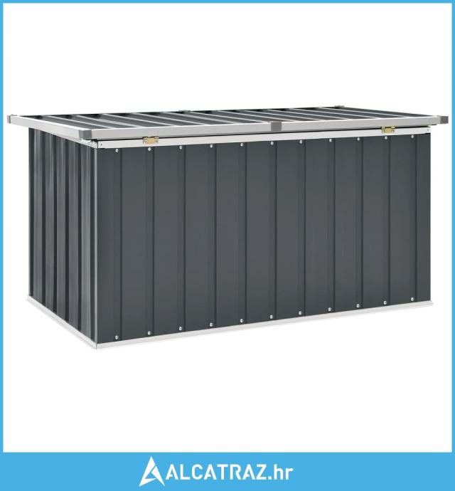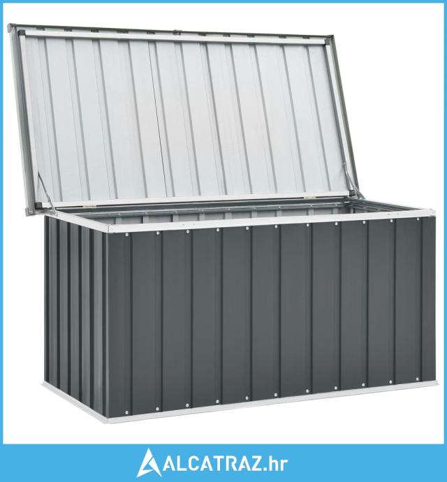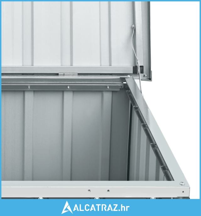 Prostrana vrtna kutija izvrsna je za spremanje jastuka, jastučića, pokrivača, igračaka i drugih predmeta. Zahvaljujući svojoj čvrstoj konstrukciji, može se upotrebljavati i kao kutija za alat. Škrinja za pohranu napravljena je od čvrstog pocinčanog čelika, prikladnog za unutarnju i vanjsku upotrebu. Vrtna kutija za pohranu ima nenametljiv, ali bezvremenski dizajn koji će se uklopiti u svako uređenje.