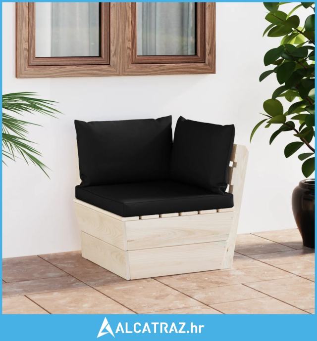 Vrtna kutna sofa od paleta s jastucima impregnirana smrekovina - NOVO
