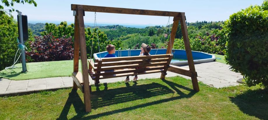 Unesite dašak elegancije i opuštenosti u vaš vrt ili terasu uz našu masivnu ljuljačku izrađenu od pažljivo odabranog drva smreke.