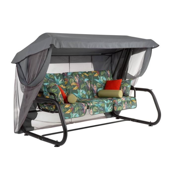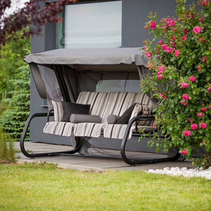 Vrtna ljuljačka Venezia Lux s mrežom protiv komaraca izvrsno je rješenje za do četiri odrasle osobe. Vrlo udobno i široko sjedalo lako se može pretvoriti u savršeni naslonjač. Izdržljiva struktura okvira izrađena od debelih čeličnih cijevi osigurava sigurnost.