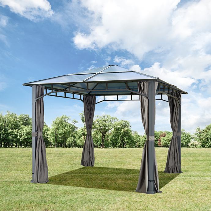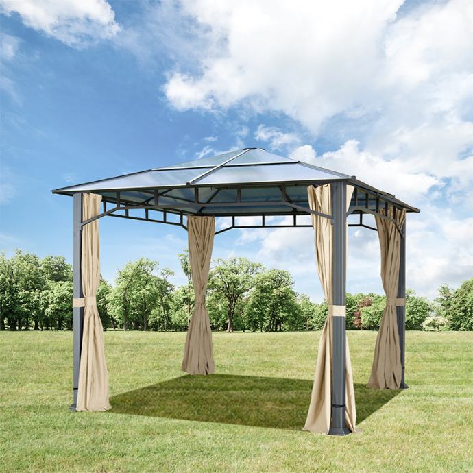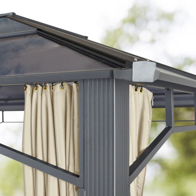 Bilo ljeti ili zimi, zahvaljujući ovoj vrtnoj sjenici Sunset Deluxe svako godišnje doba možete provesti opuštajući se u svom vrtu. Sa UV zaštitom 50+ ovaj je paviljon savršeno opremljen za vruće ljetne dane. A zimi? I zimi želite uživati u vlastitoj vrtnoj idili, au jesen doživjeti kako lišće pada s drveća i dočarava jedinstvene boje u vrtu. Budući da je ova 100% vodootporna vrtna sjenica izrađena od aluminijske konstrukcije premazane prahom i ima krov od polikarbonatnih ploča otpornih na vremenske uvjete, ne morate rastavljati sjenicu ili krov i spremati ih. Naprotiv - možete se opustiti i uživati u raskoši zime uz topli napitak ili zimski roštilj. Pozovite svoje prijatelje i rodbinu na zimski roštilj - vrtni paviljon 4x4 m nudi dovoljno prostora za veliki roštilj. Nijedna druga veličina vrtnog paviljona u asortimanu Profizelt24 ne daje vašem vrtu tako veliku, natkrivenu površinu! Ova velika površina također je idealna kao ukrasni prostor ili za nadogradnju dnevnog boravka na otvorenom. Prikladne za ove prilike, kuke za pričvršćivanje ukrasnih materijala ili rasvjete već su integrirane u konstrukciju. Posljednje, ali ne manje važno, boja šampanjca daje vašoj sjenici moderan i privlačan štih. Ovaj Sunset Deluxe paviljon izaziva entuzijazam od prvog trenutka! pokriveno područje! Ova velika površina također je idealna kao ukrasni prostor ili za nadogradnju dnevnog boravka na otvorenom. Prikladne za ove prilike, kuke za pričvršćivanje ukrasnih materijala ili rasvjete već su integrirane u konstrukciju. Posljednje, ali ne manje važno, boja šampanjca daje vašoj sjenici moderan i privlačan štih. Ovaj Sunset Deluxe paviljon izaziva entuzijazam od prvog trenutka! pokriveno područje! Ova velika površina također je idealna kao ukrasni prostor ili za nadogradnju dnevnog boravka na otvorenom. Prikladne za ove prilike, kuke za pričvršćivanje ukrasnih materijala ili rasvjete već su integrirane u konstrukciju. Posljednje, ali ne manje važno, boja šampanjca daje vašoj sjenici moderan i privlačan štih. Ovaj Sunset Deluxe paviljon izaziva entuzijazam od prvog trenutka!
