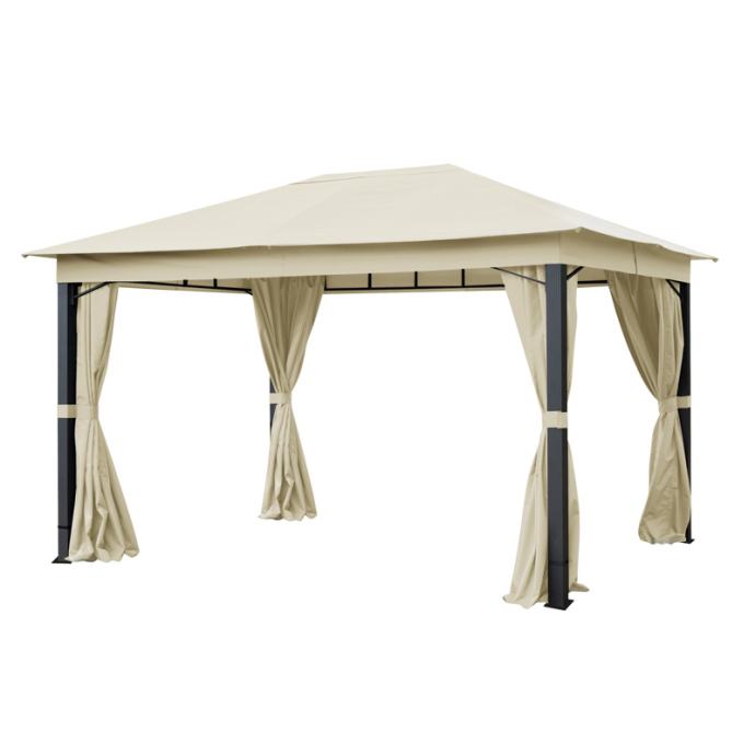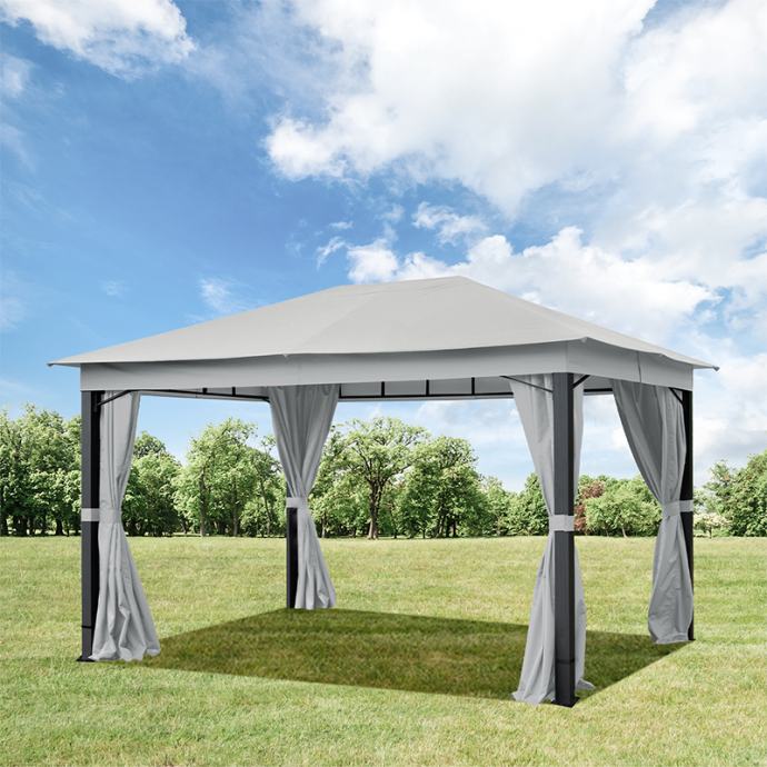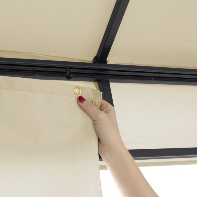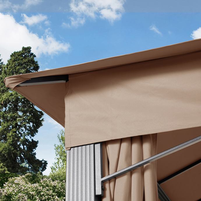 Tko to ne zna? Tjedan je opet bio prekratak, a sljedeći dan je neizbježno sve bliži. Ali s vrtnim paviljonom Sunset Premium napokon postoji mjesto mira u vrtu gdje vrijeme stoji. Sa svojom konstrukcijom od aluminija i čelika obložene prahom, visokokvalitetnim krovom od 220 g/m² poliestera i individualnom estetikom, predstavlja funkcionalnost koja nudi više od pukog zbroja pojedinačnih dijelova. Već struktura uvjerava svakoga. 100% vodootporan paviljon može se postaviti bez napora za oko 20 minuta zahvaljujući visokokvalitetnom klik sustavu - i to bez ikakvog alata. Dobavljač dekorativnih sjenila uvjerava visokom UV zaštitom od 50+. Vizualni naglasak proizlazi iz interakcije njegovog jasnog oblika i četiri bočna dijela, koji se mogu skupiti na baznim šipkama. Integrirani visokokvalitetni dvostruki sustav vodilica omogućuje jednostavno rukovanje. Za još veću zaštitu i udobnost, bočne stranice mogu se djelomično ili potpuno zatvoriti. Tijekom cijele sezone, Sunset Premium sa svim svojim značajkama nudi varijabilnu zaštitu potrebnu za uživanje svaki put na otvorenom.