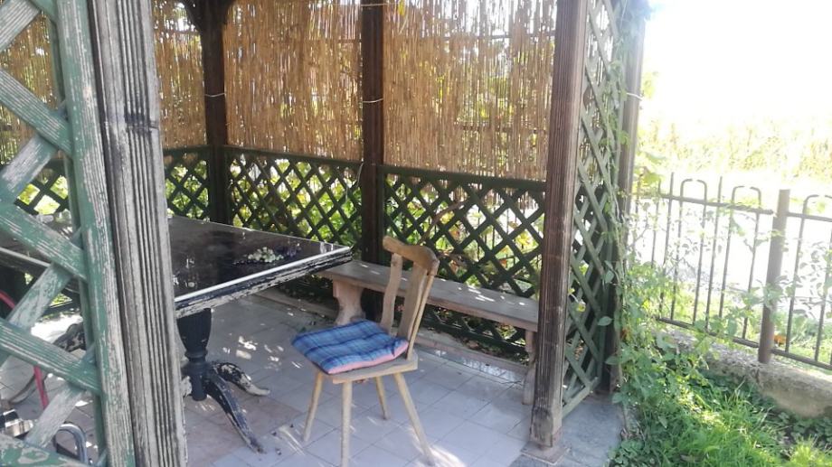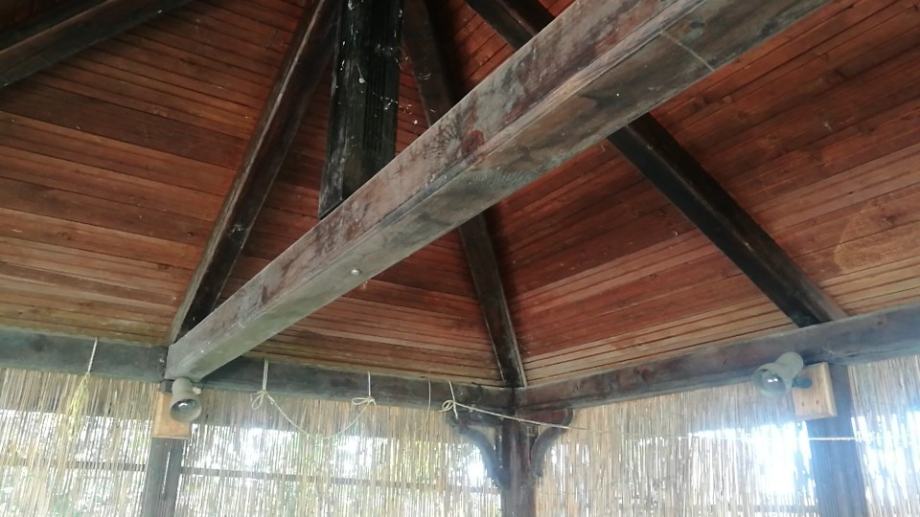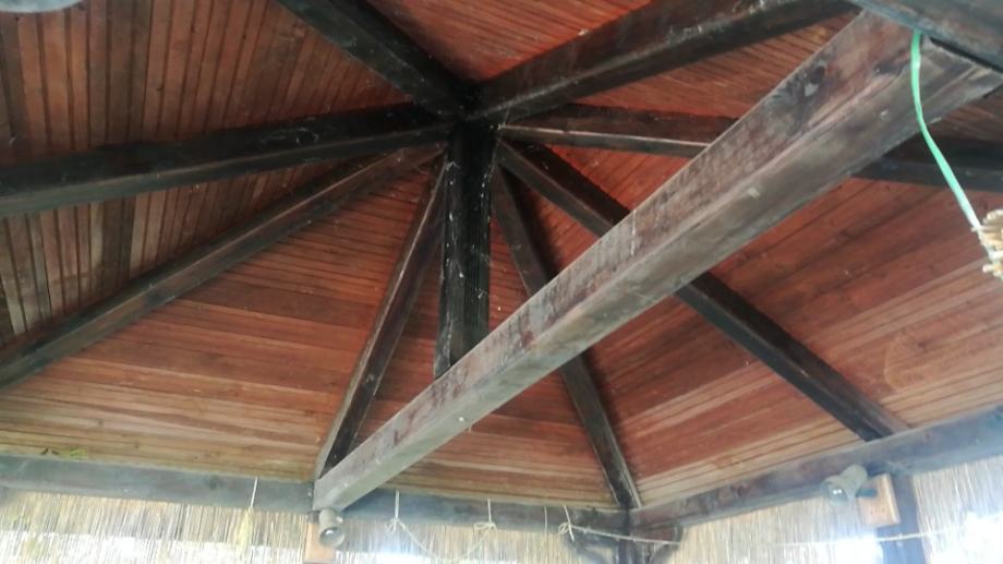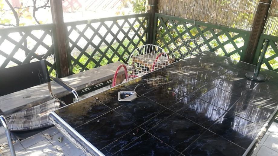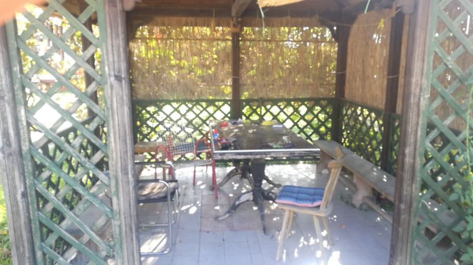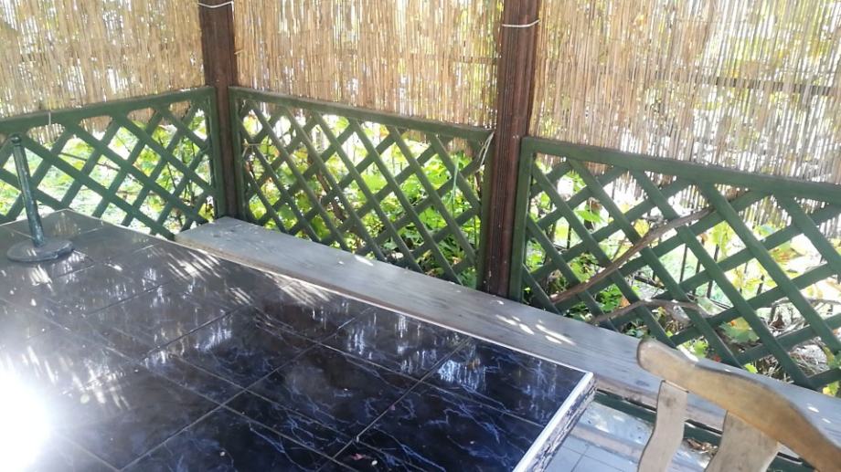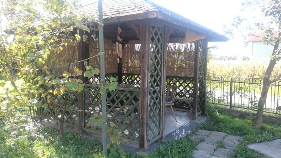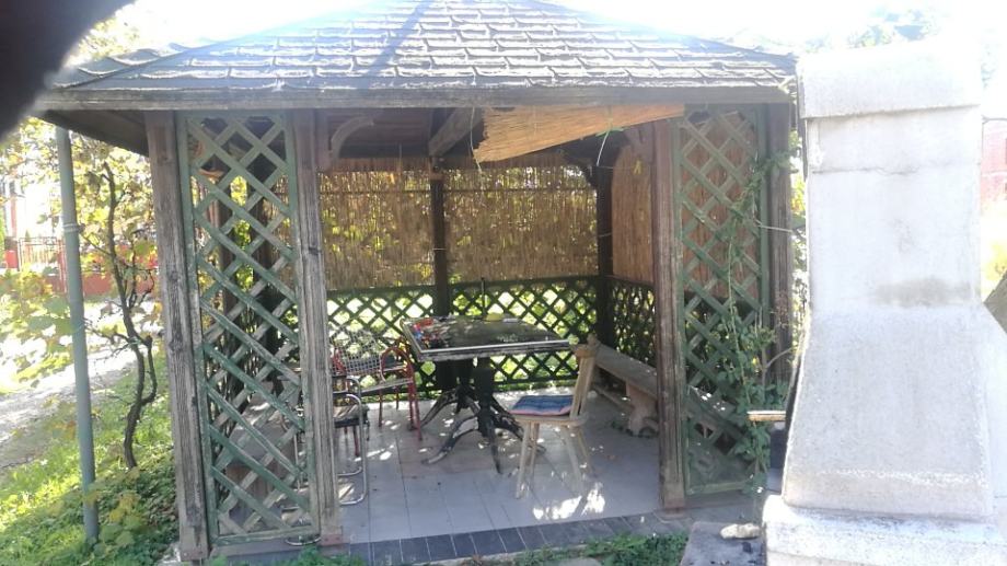 Dimenzije sjenice su 3x3 visina do krova je 210cm , visina s krovom je 3m potrebno ju je prefarbat,uz nju idu i stol i klupa kpji su na slici..za odvoz se morate sami pobrinuti..zvati na 091 5348004