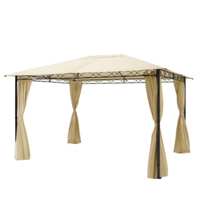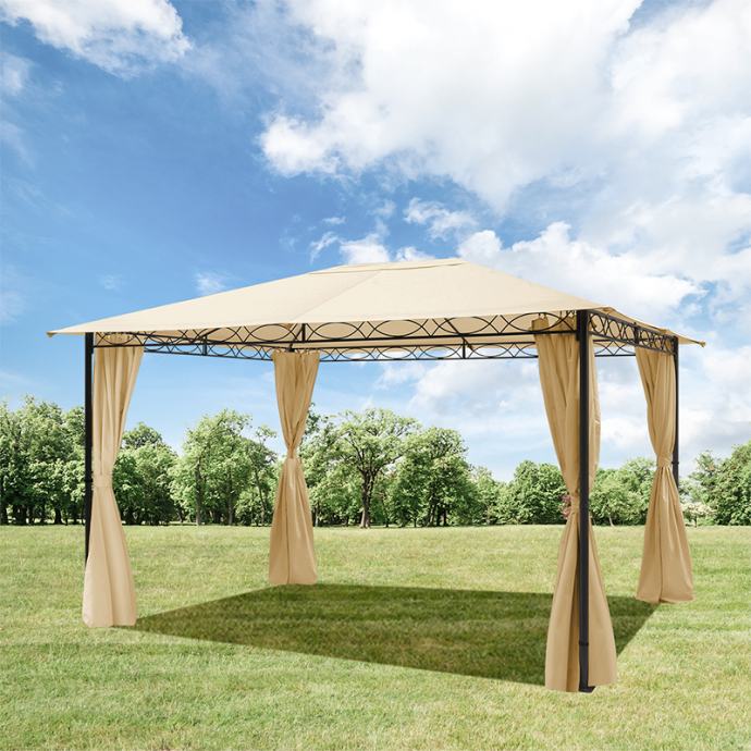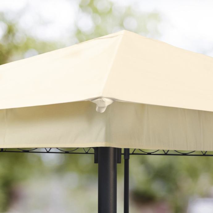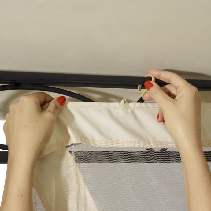 Čvrsta krovna cerada od cca 180 g/m² izrađena od visokokvalitetne poliesterske tkanine s dodatnim PU premazom nudi optimalnu zaštitu od kiše i sunca. Zahvaljujući strojno zalijepljenim šavovima, sjenica Rendezvous Classic zajamčeno je 100% vodootporna. Uz UV zaštitu od 50+, krovna cerada nudi pouzdanu zaštitu tijekom cijele sezone. Zbog male težine, krovna cerada se posebno lako sastavlja, a vrlo je praktična i za skladištenje. A ako želite privući još više pozornosti na vrtni paviljon, također možete objesiti priloženu zastor - za još veću udobnost i eleganciju! Preporučamo uklanjanje i krovne cerade i zastora u zimskoj sezoni te po jakoj kiši ili vjetru.