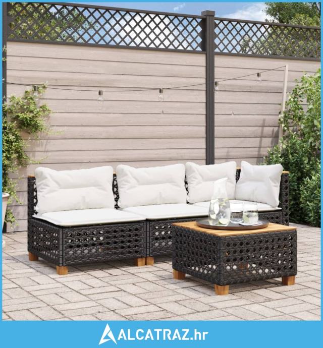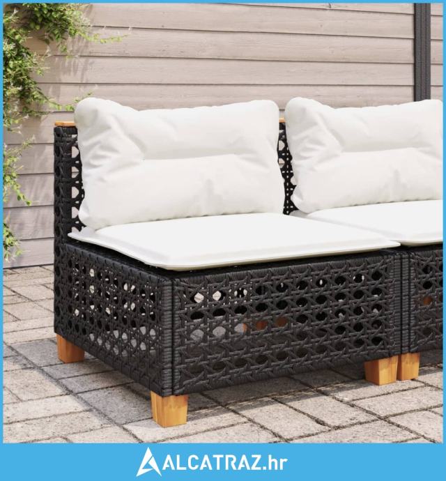 Vrtna sofa bez naslona za ruke s jastucima crna od poliratana - NOVO