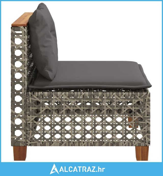 Vrtna sofa bez naslona za ruke s jastucima siva od poliratana - NOVO