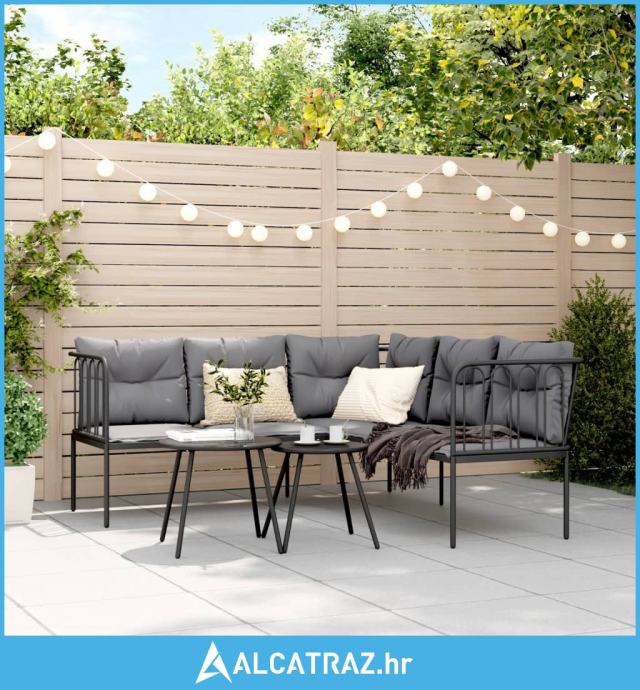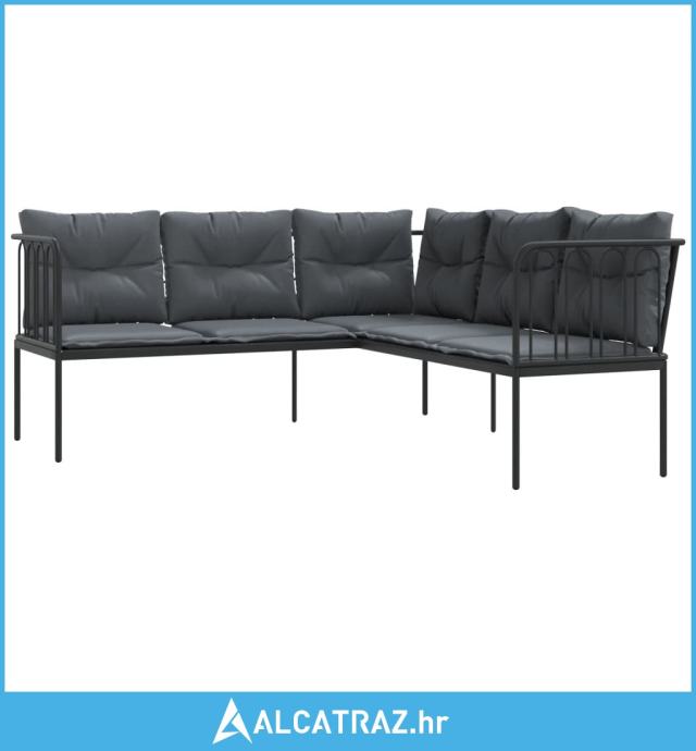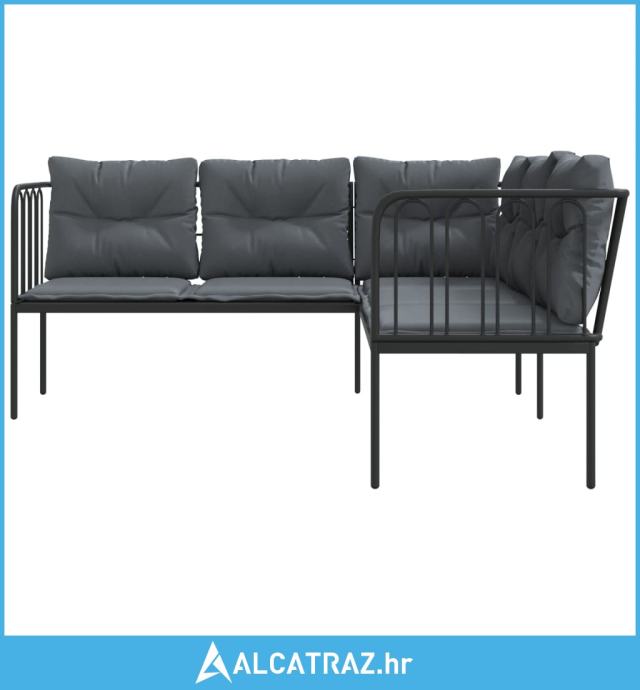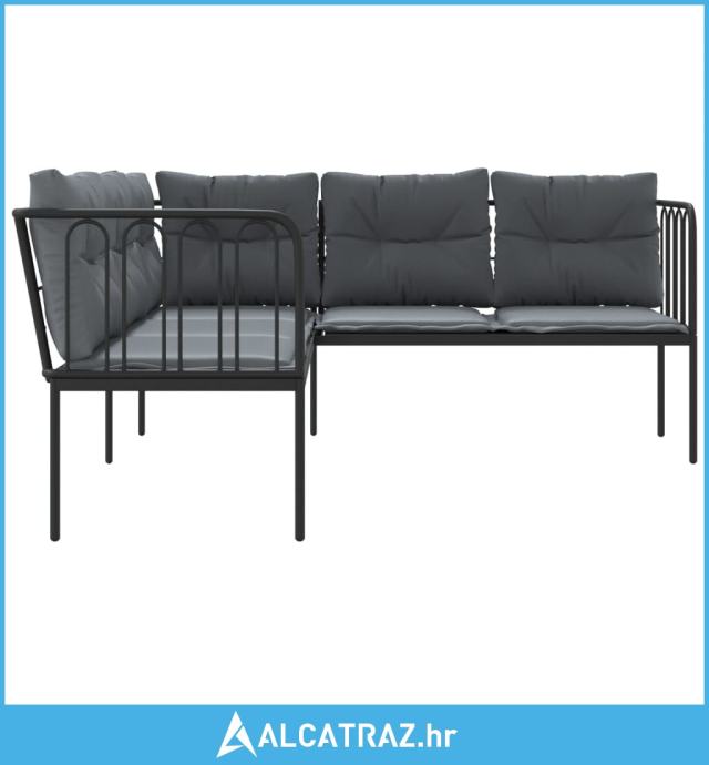 Vrtna sofa s jastucima L-oblika crna od čelika i tekstilena - NOVO