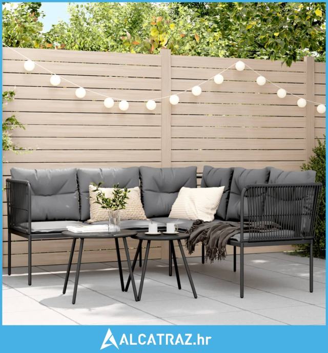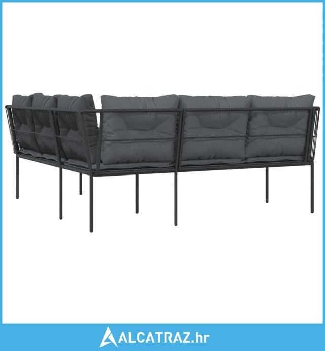 Vrtna sofa s jastucima L-oblika crna od čelika i tekstilena - NOVO