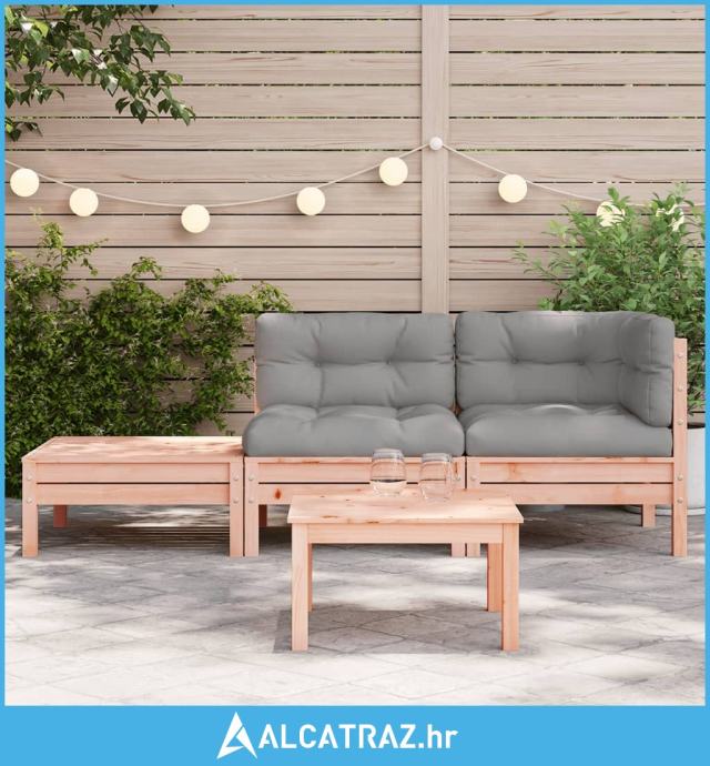 Vrtna sofa s jastucima i tabureom od masivnog drva duglazije - NOVO