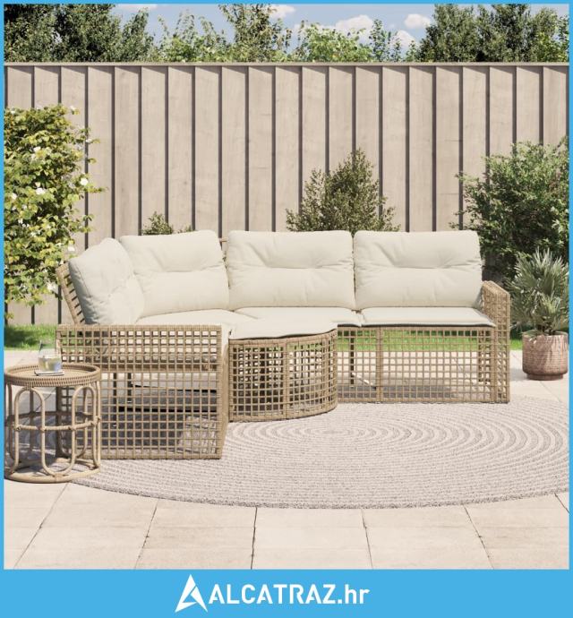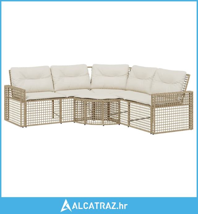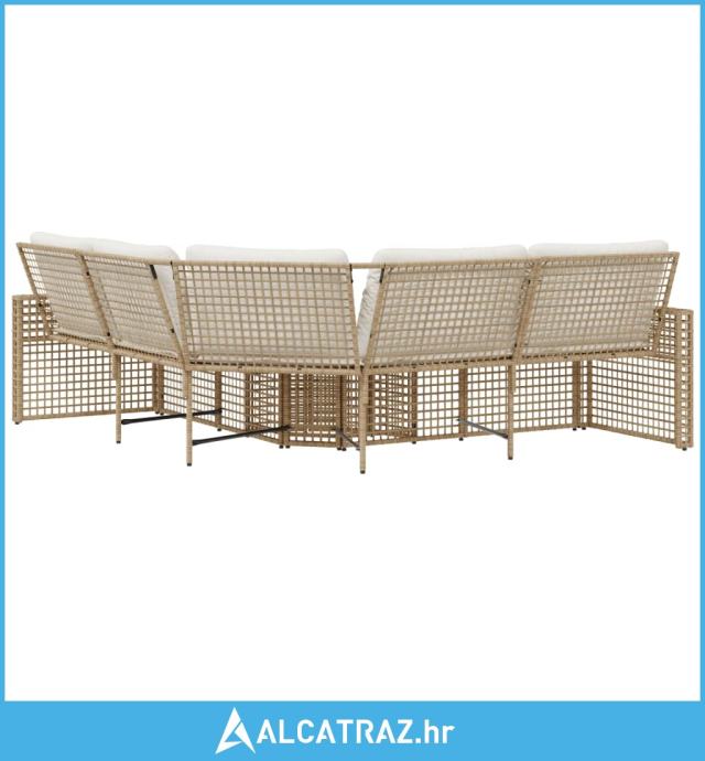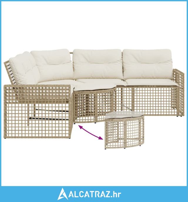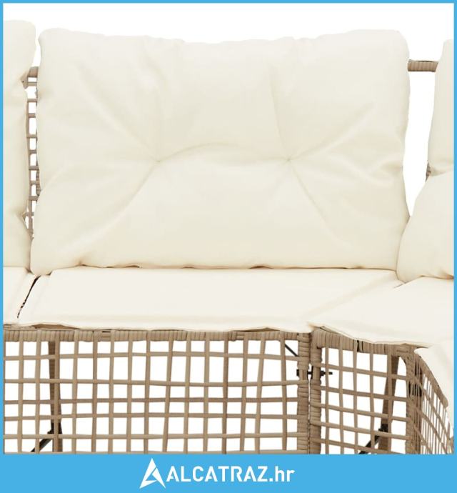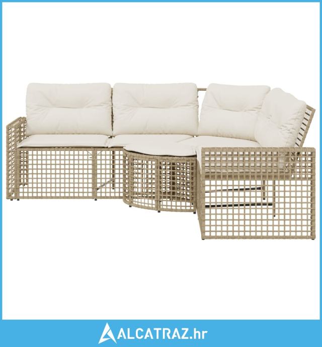 Vrtna sofa L-oblika sa jastucima i tabureom bež od poliratana - NOVO