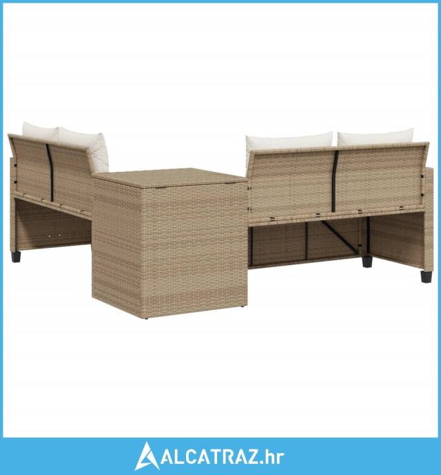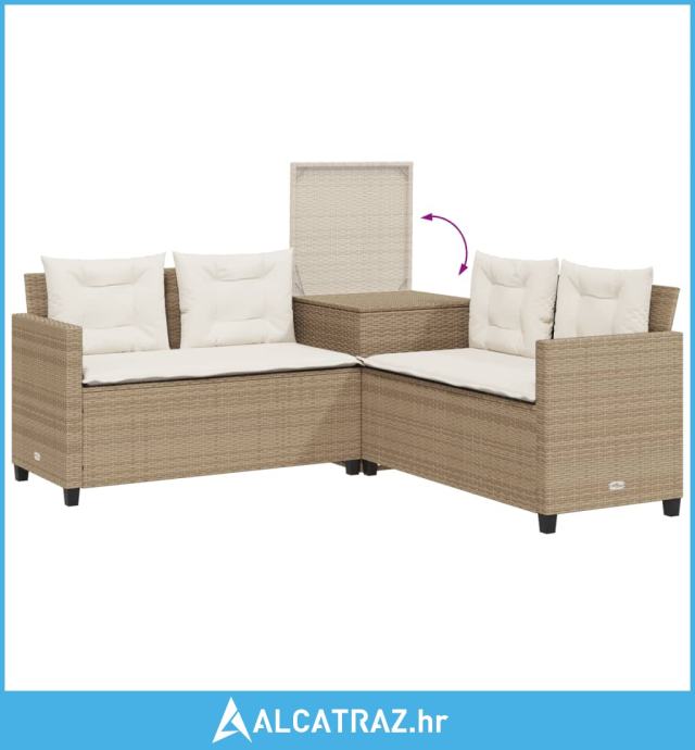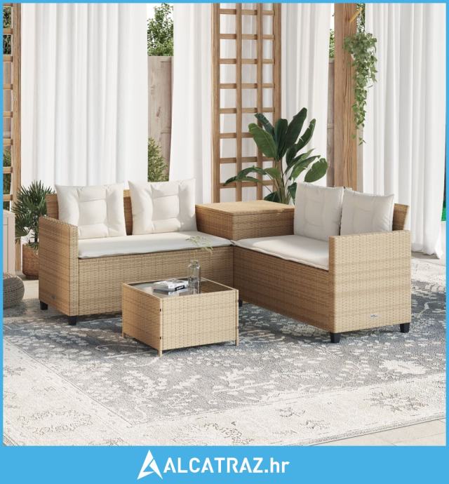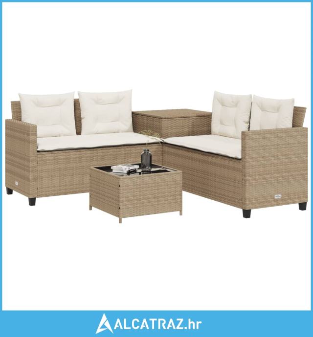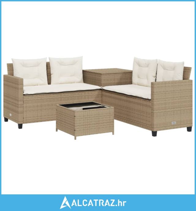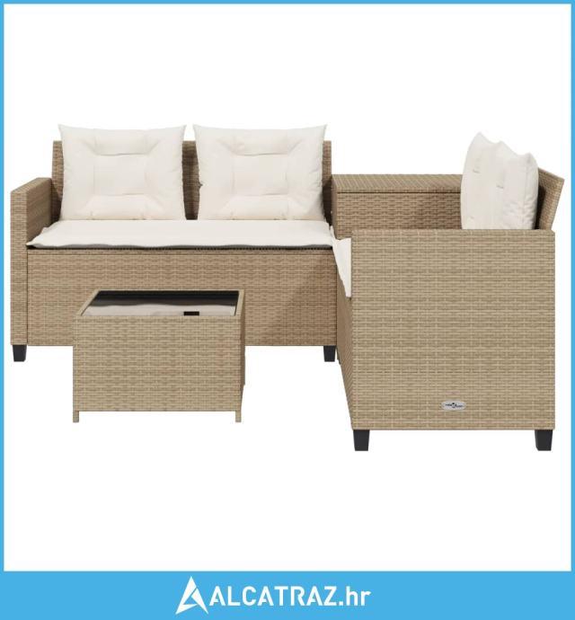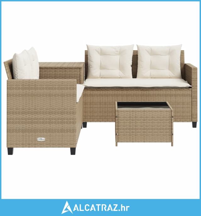 Vrtna sofa L-oblika sa stolom i jastucima bež od poliratana - NOVO