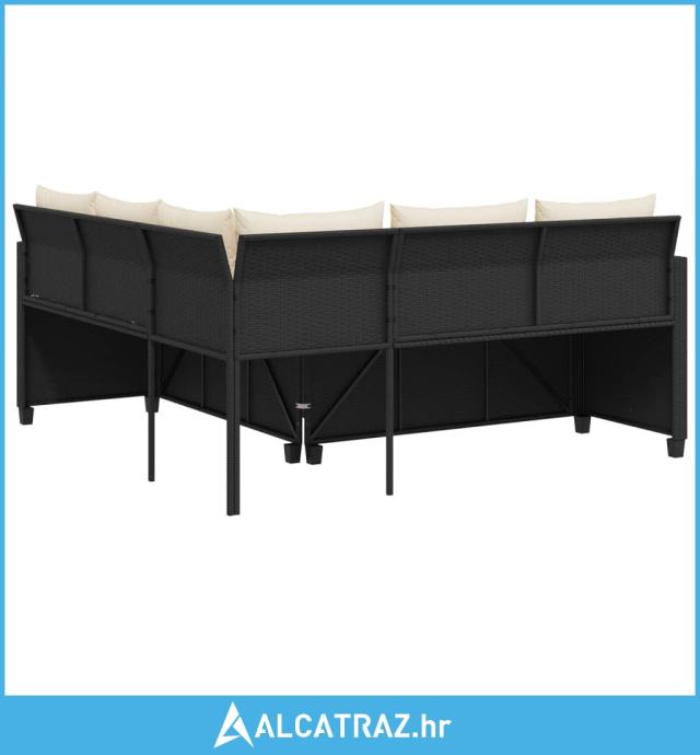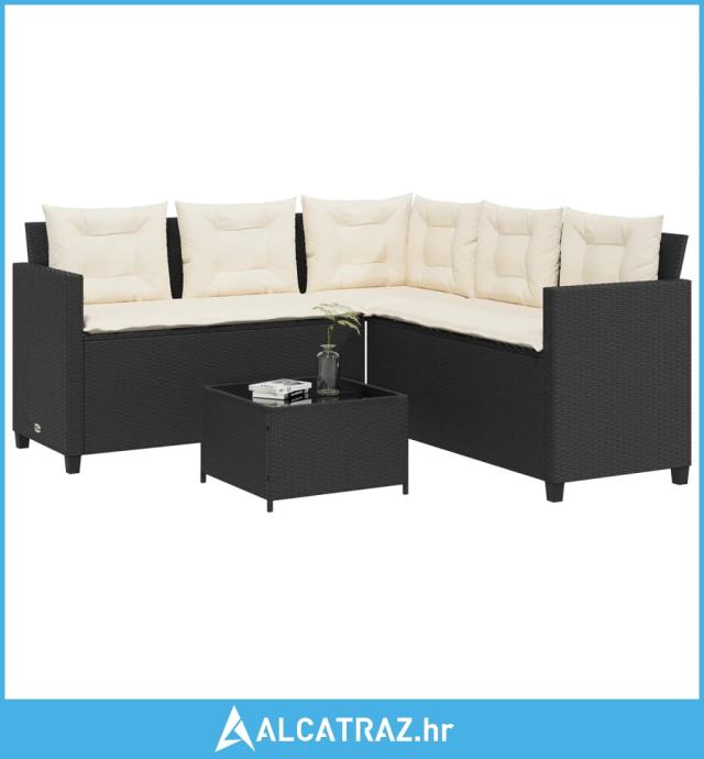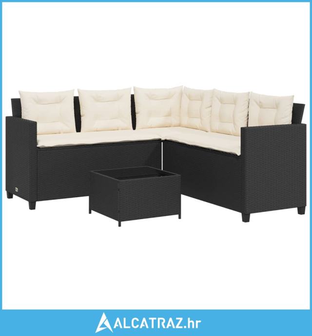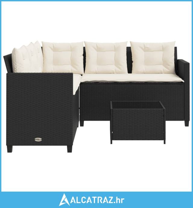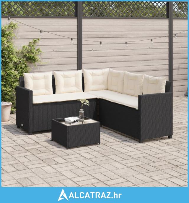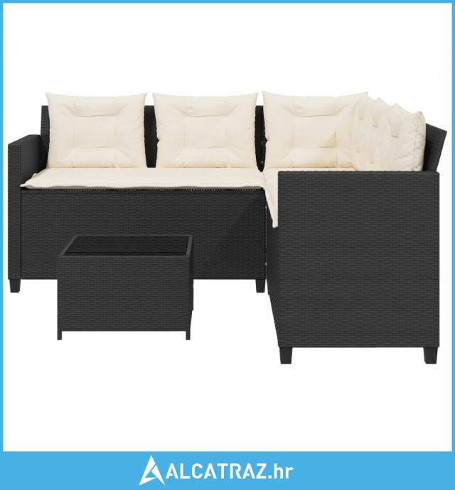 Vrtna sofa L-oblika sa stolom i jastucima crna od poliratana - NOVO