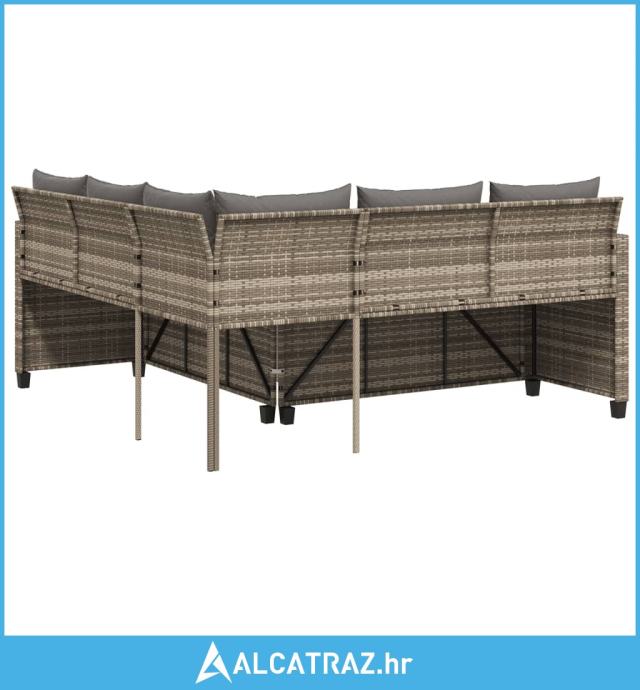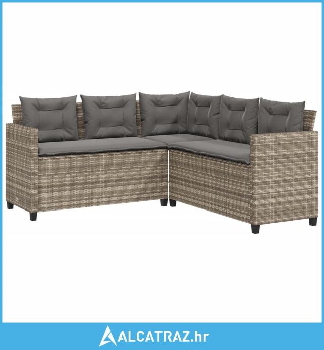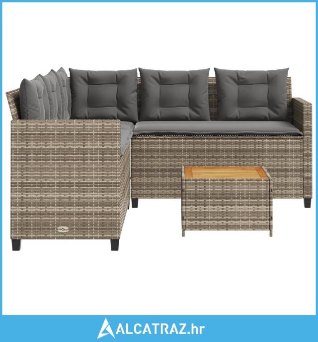 Vrtna sofa L-oblika sa stolom i jastucima siva od poliratana - NOVO