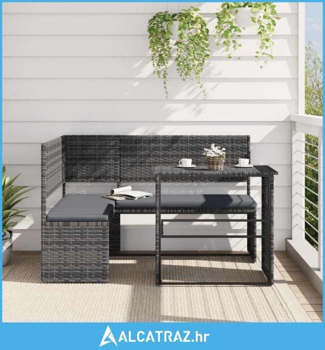 Vrtna sofa L-oblika sa stolom i jastucima siva od poliratana - NOVO
