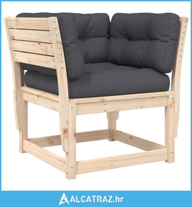 Vrtna sofa od masivne borovine s naslonima za ruke i jastucima - NOVO