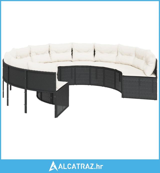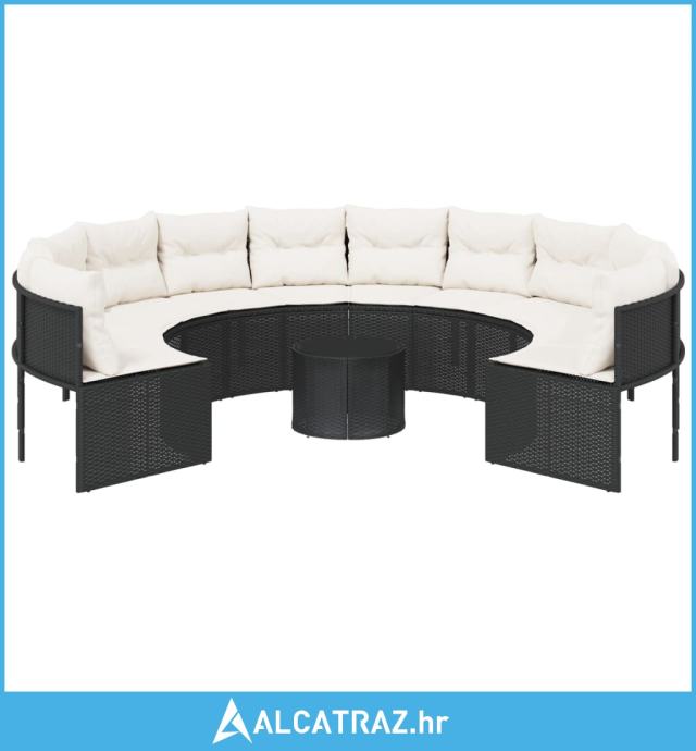 Vrtna sofa sa stolom i jastucima okrugla crna od poliratana - NOVO