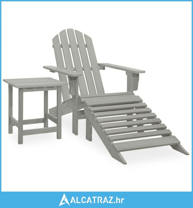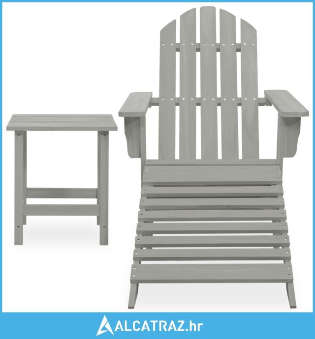 Vrtna stolica Adirondack s otomanom i stolićem od jelovine siva - NOVO