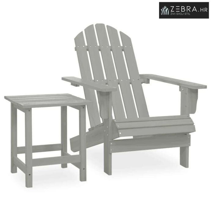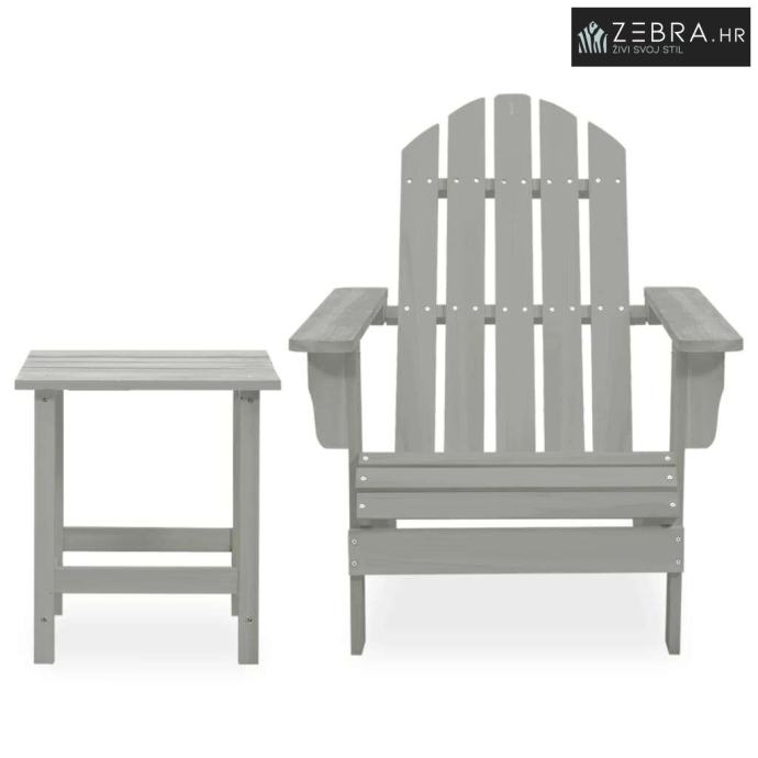 Vrtna stolica Adirondack sa stolićem od masivne jelovine siva - Siva 1