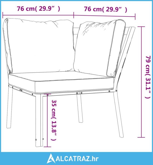 - Visina sjedala od tla (bez jastuka): 35 cm