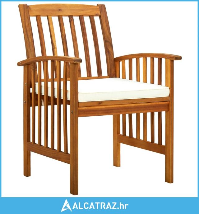 Ove vrtne blagovaonske stolice od masivnog bagremovog drva s jastucima dodaju dašak rustičnog šarma vašem vanjskom prostoru, pružajući najveću udobnost tijekom objedovanja.