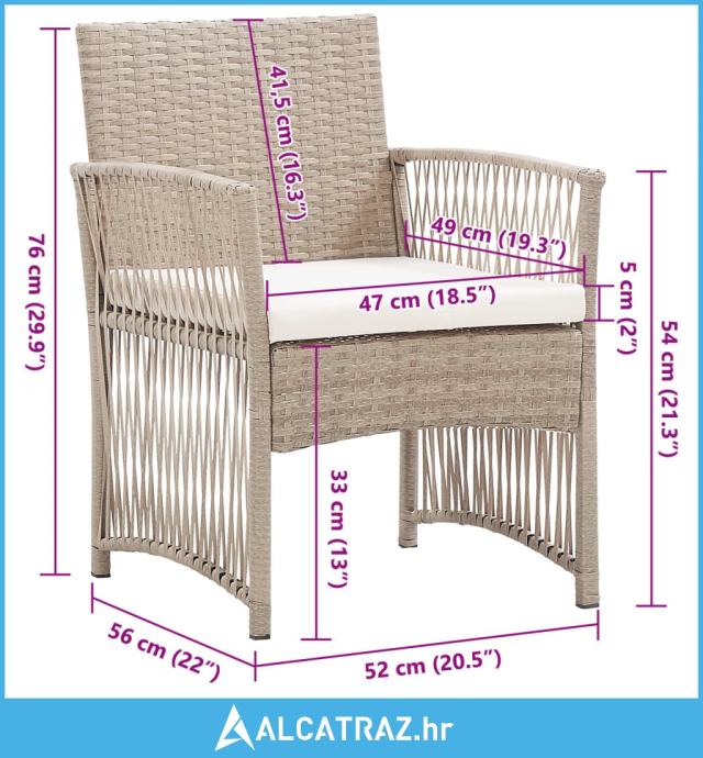 - Dimenzije stolice: 52 x 56 x 76 cm (Š x D x V)