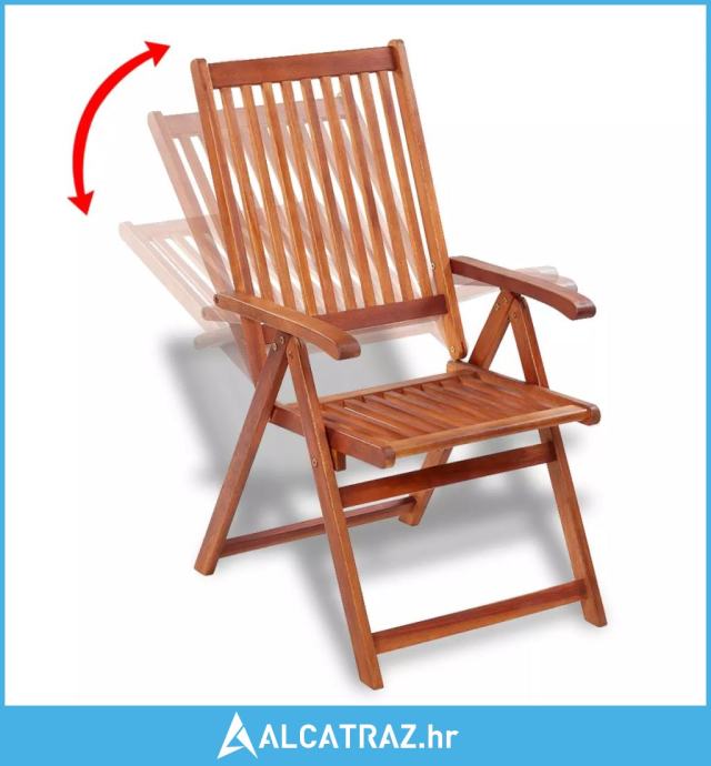 Ovaj blagovaonski set izrađen je od visokokvalitetnog bagremovog drveta, tropski tvrdog, koje je otporno na vremenske utjecaje i vrlo izdržljivo. Uljani premaz čini ih jednostavnim za čišćenje vlažnom krpom. Stolice se mogu podesiti u 5 pozicija, koje će vam pružiti optimalnu udobnost sjedenja. Stolice se također mogu preklopiti, radi uštede prostora, kada nisu u uporabi.