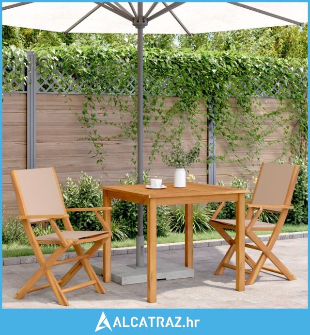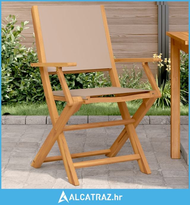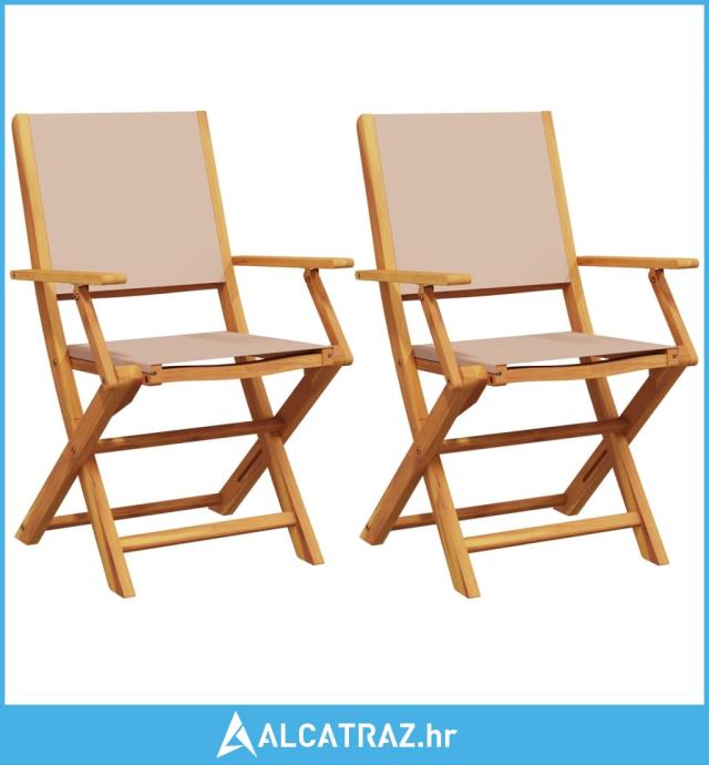 Vrtne stolice 2 kom smeđesive masivno drvo bagrema i tkanina - NOVO