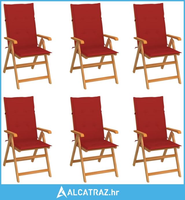 Vrtne stolice s crvenim jastucima 6 kom od masivne tikovine - NOVO