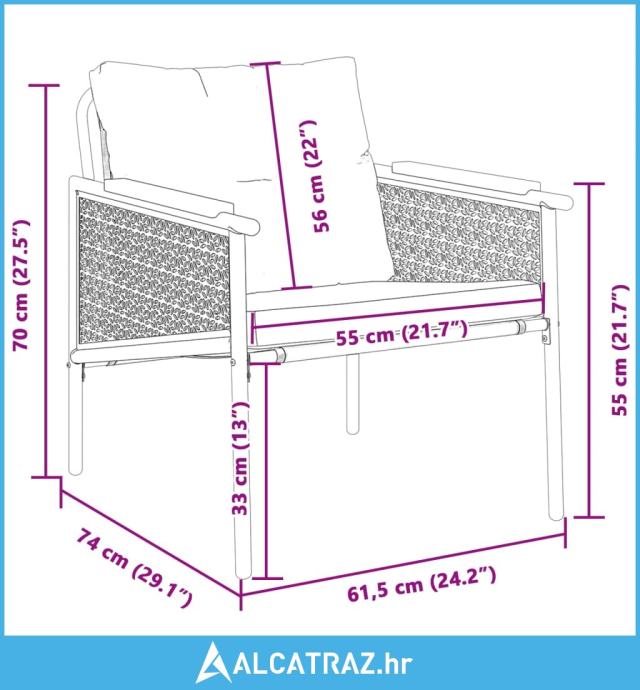 - Dimenzije jastuka za sjedalo: 55 x 58 x 5 cm (Š x D x Deb.)