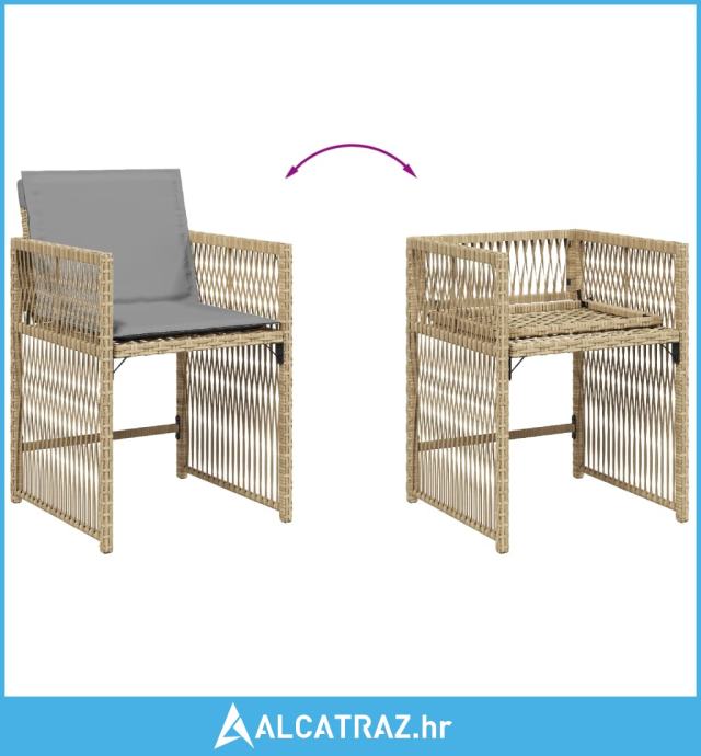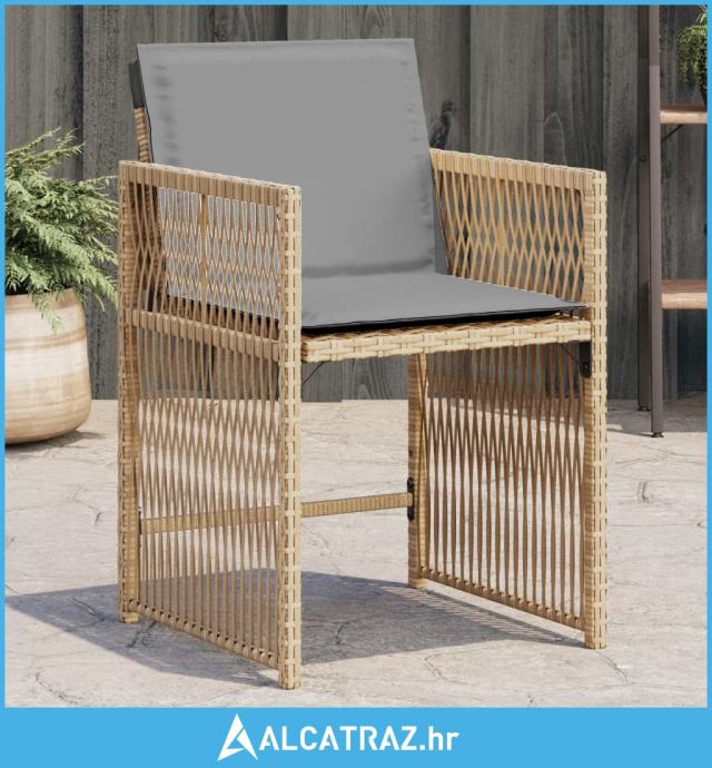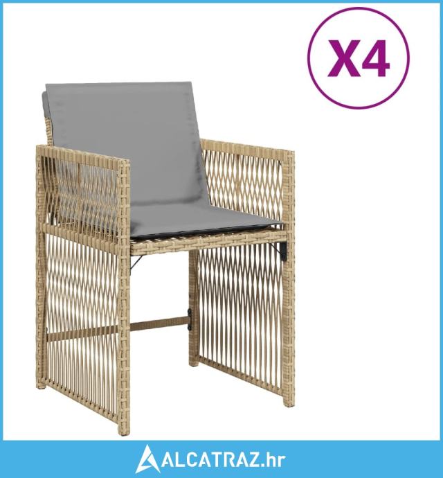 Vrtne stolice s jastucima 4 kom miješane bež boje od poliratana - NOVO