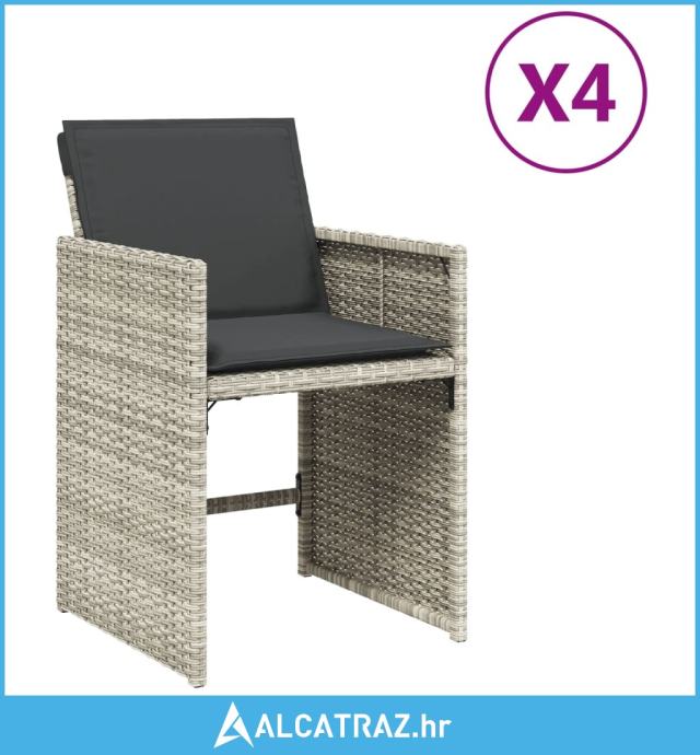 Vrtne stolice s jastucima 4 kom od poliratana svjetlosive - NOVO