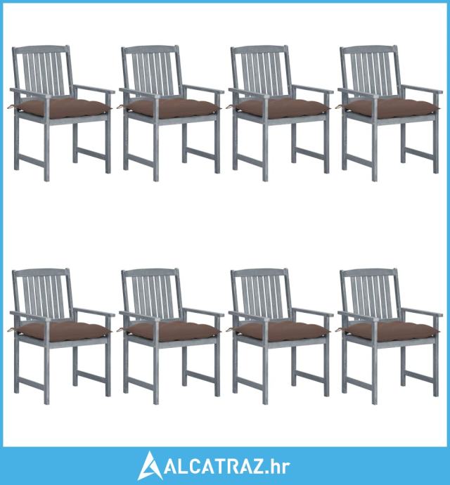 Vrtne stolice s jastucima 8 kom sive od masivnog drva bagrema - NOVO