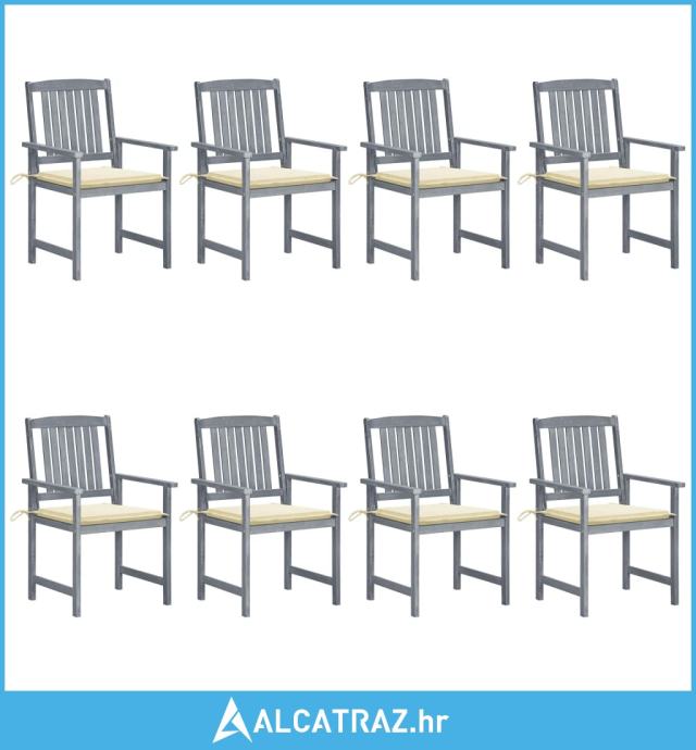 Vrtne stolice s jastucima 8 kom sive od masivnog drva bagrema - NOVO