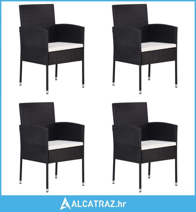 Vrtne stolice s krem bijelim jastucima 4 kom crne od poliratana - NOVO