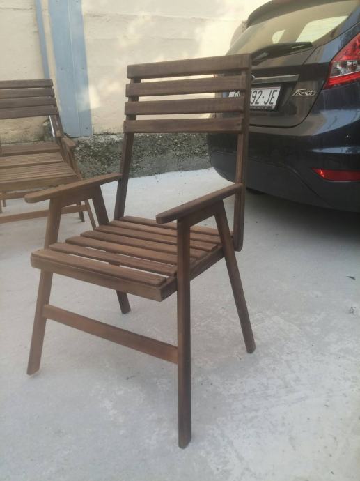 vrtne stolice standardne visine sjedišta, izrađene od jelovine (opcija hrast) pogodne za ugostiteljstvo ili osobnu upotrebu, bojane lak lazurom. ....moguće slanje nekom od dostavnih službi